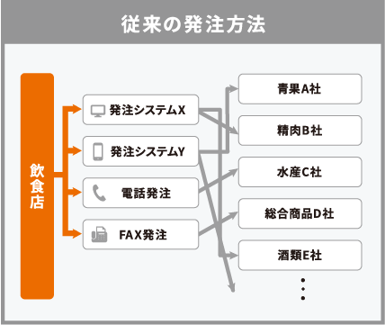 - 仕入先ごとに発注方法がバラバラで手間